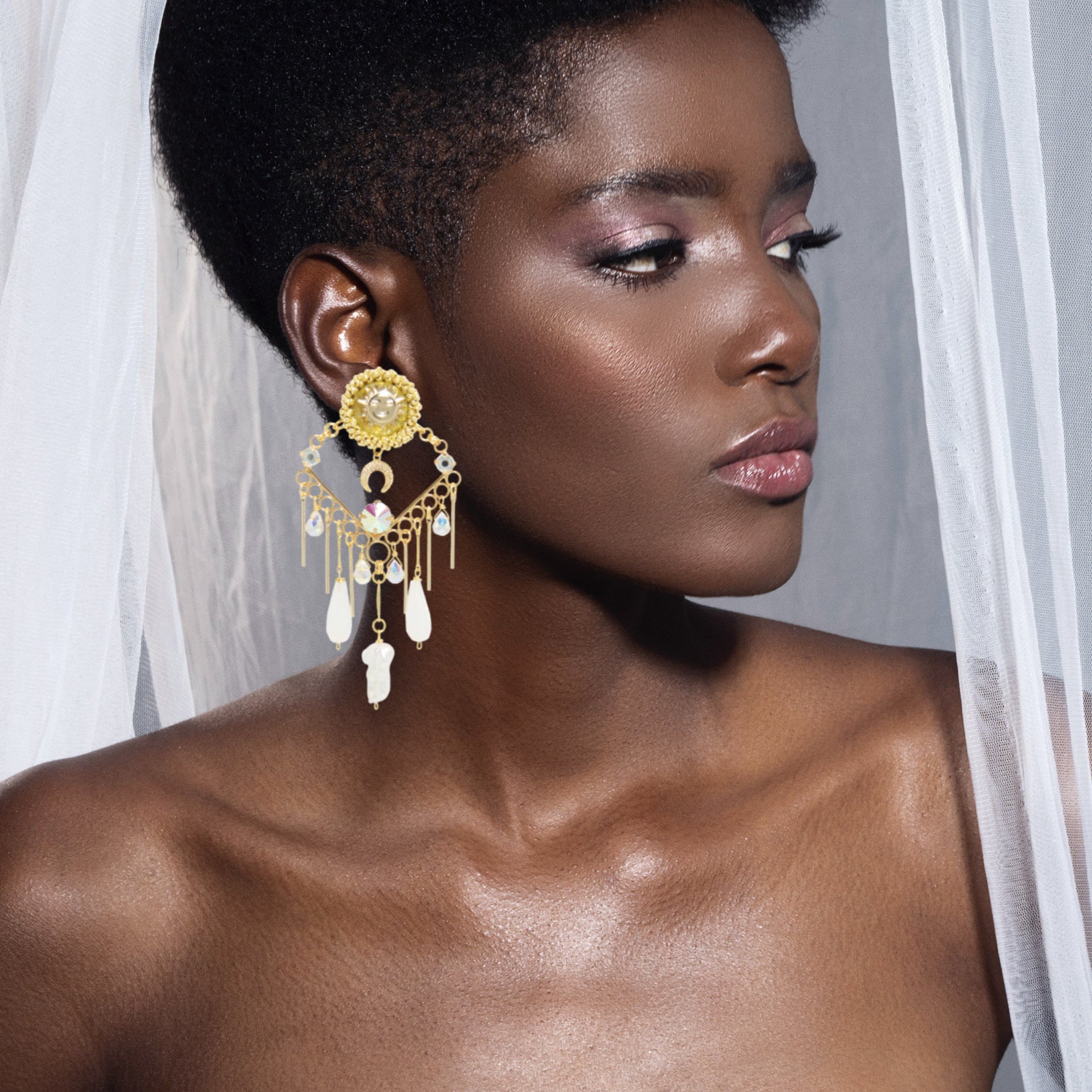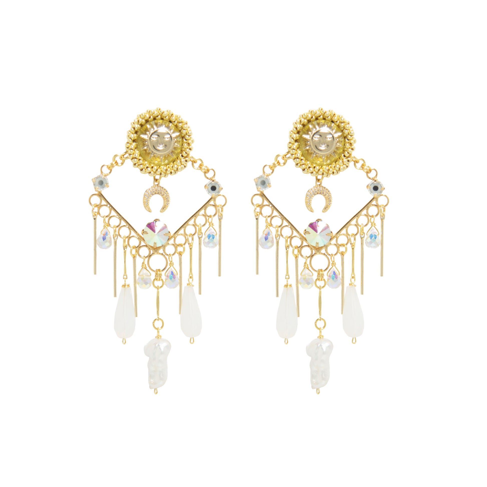 From the "My Universe" collection, the "Soluna" earrings are born, a statement piece that captures the heavenly duality.